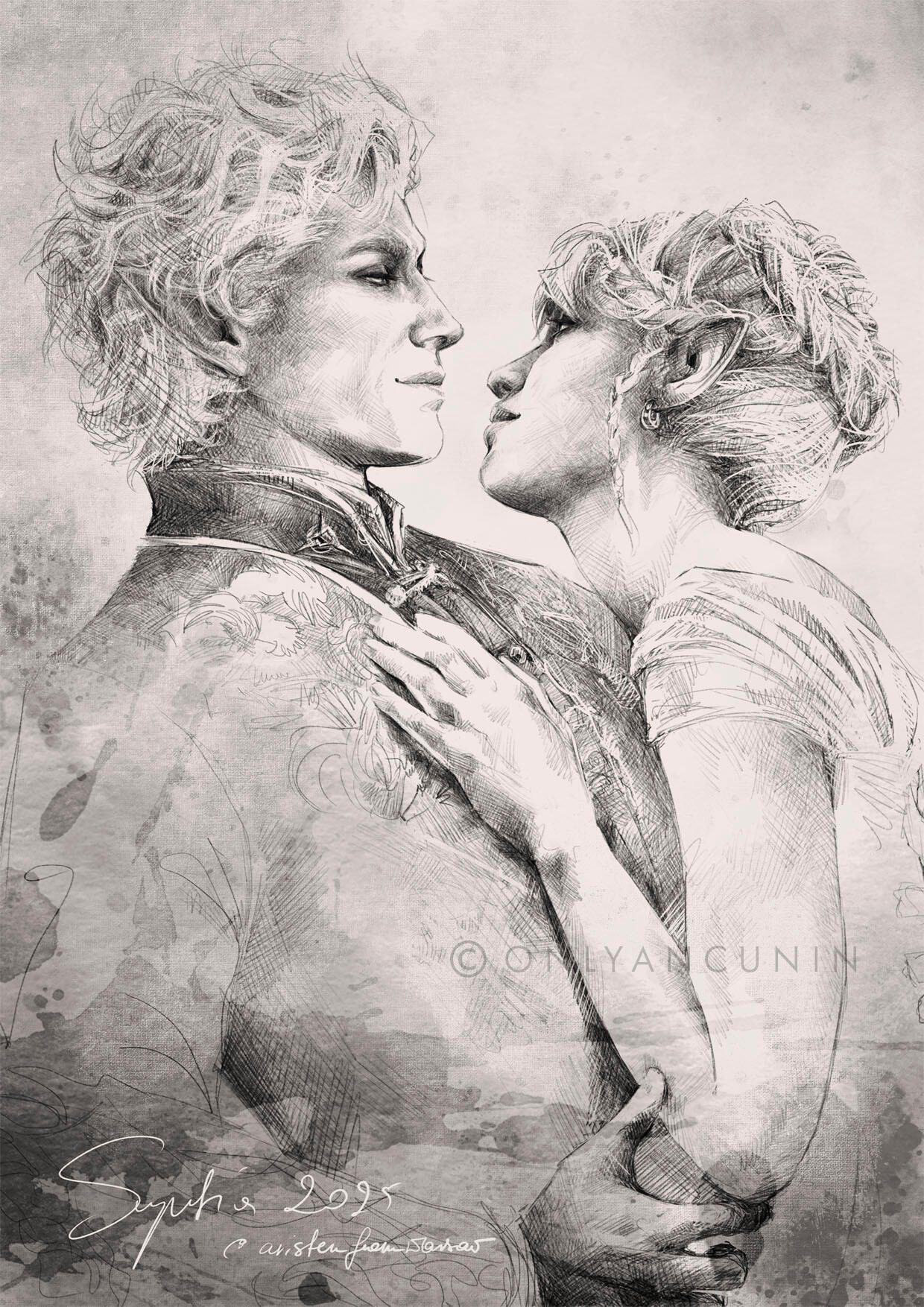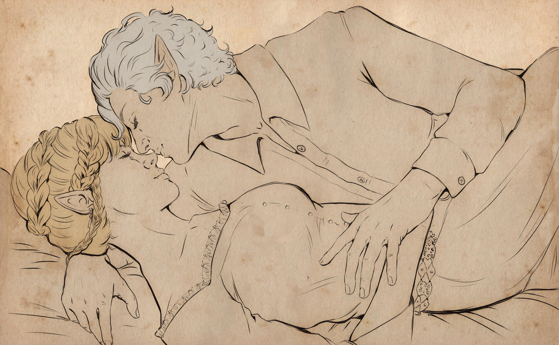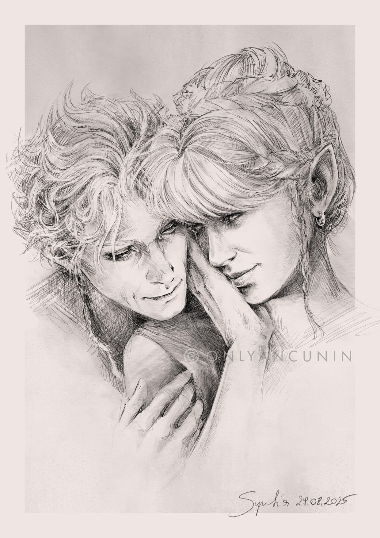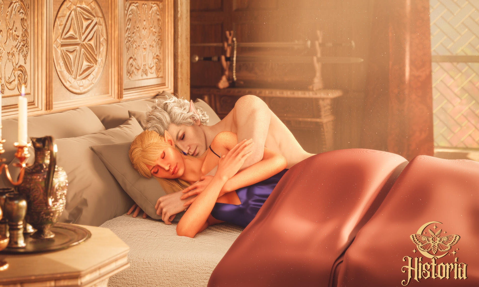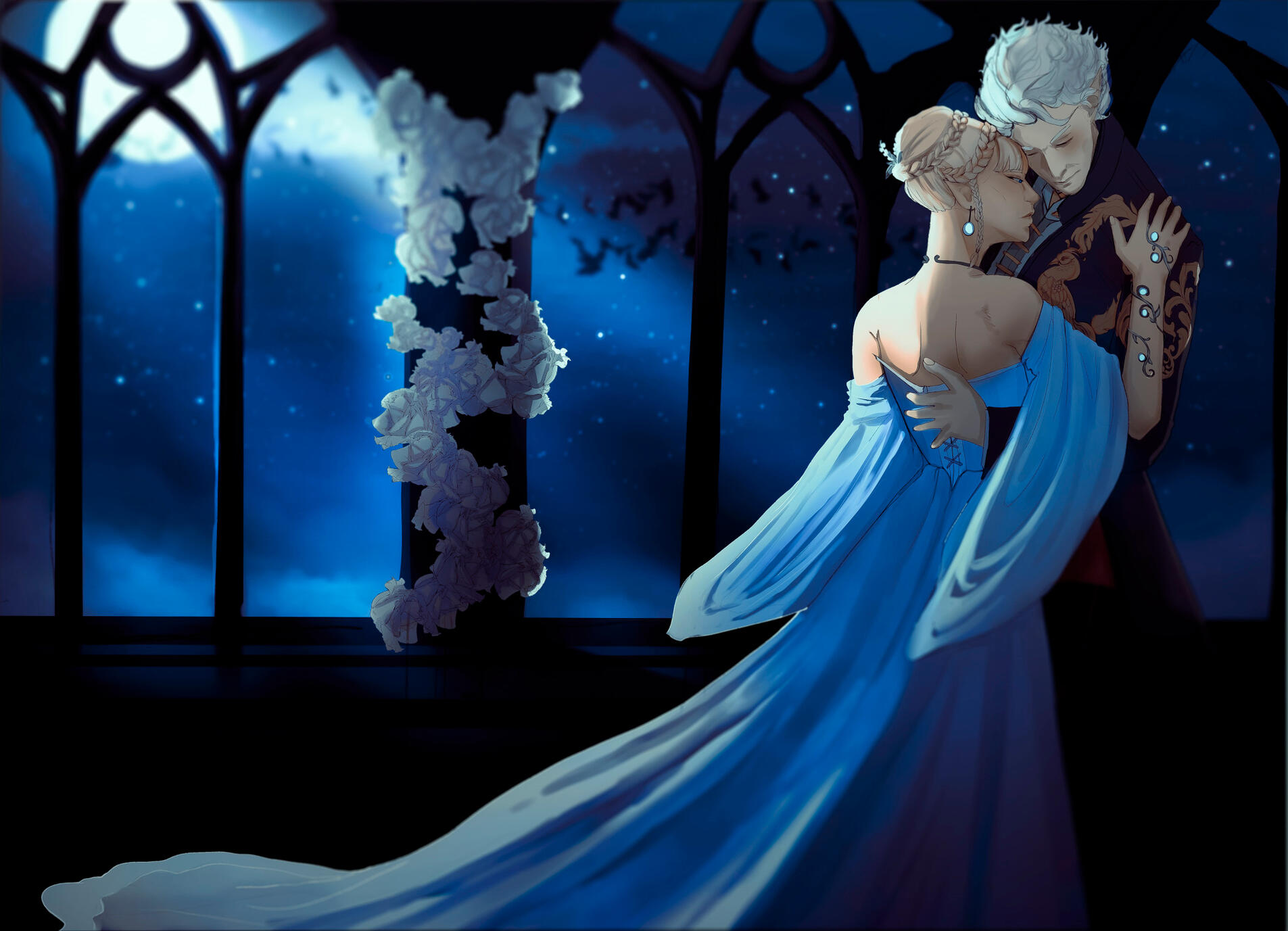 She also remembered the man who contributed to all her tragedy - Elwyn. She remembered how he feigned love for her and he did it all of his own free will for financial gain. She hated this man in few seconds.Aristen and Astarion stayed in the village for a while and moved on to find a way to protect Astarion from the sun. They also had a new companion, Fiona (Aristen's younger sister) who wanted to see some of the world. To have money for the trip, the three of them took various jobs. Sometimes they were mercenaries, sometimes they were doing small jobs or hunting bandits. Fiona also performed in inns, as she was a bard.After a long time and reading dozens of old books and scrolls, Aristen, in an old, forgotten temple in the middle of nowhere, found an enchanted pendant that allowed Astarion to enjoy the sun again after many years. However, all three of them continued their traveling lifestyle.One night Aristen and Astarion were lying on the grass and watching the stars. Then Ari suggested to her beloved one that they maybe return permanently to Baldur's Gate and start a simple, city life. He agreed and asked if she would become his wife. Aristen was surprised, despite spending so many years by Astarion's side, she was afraid that one day he would leave her. She still considered herself a monster, even though she had cut herself off from her father many years ago. Aristen was always afraid that she would somehow become a bloodthirsty murderer again. And Astarion could have almost any woman - she had seen more than once how lustfully ladies looked at him. But he chose her and wants to be with her forever.The wedding took place in her native village. Her entire family and friends celebrated one of the most beautiful days of her life.