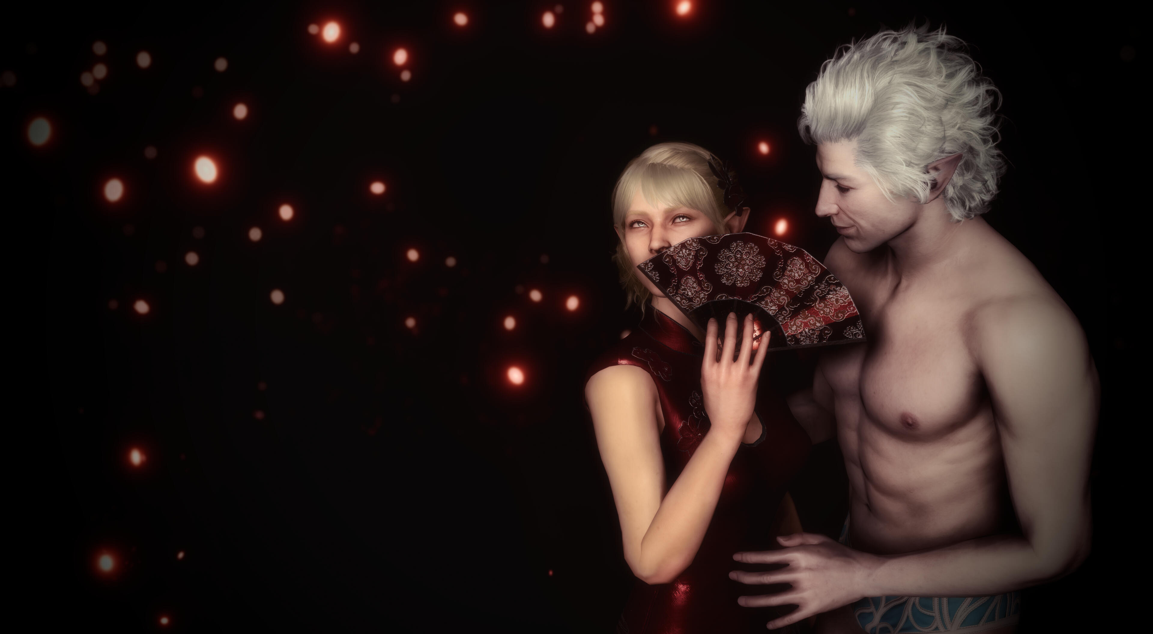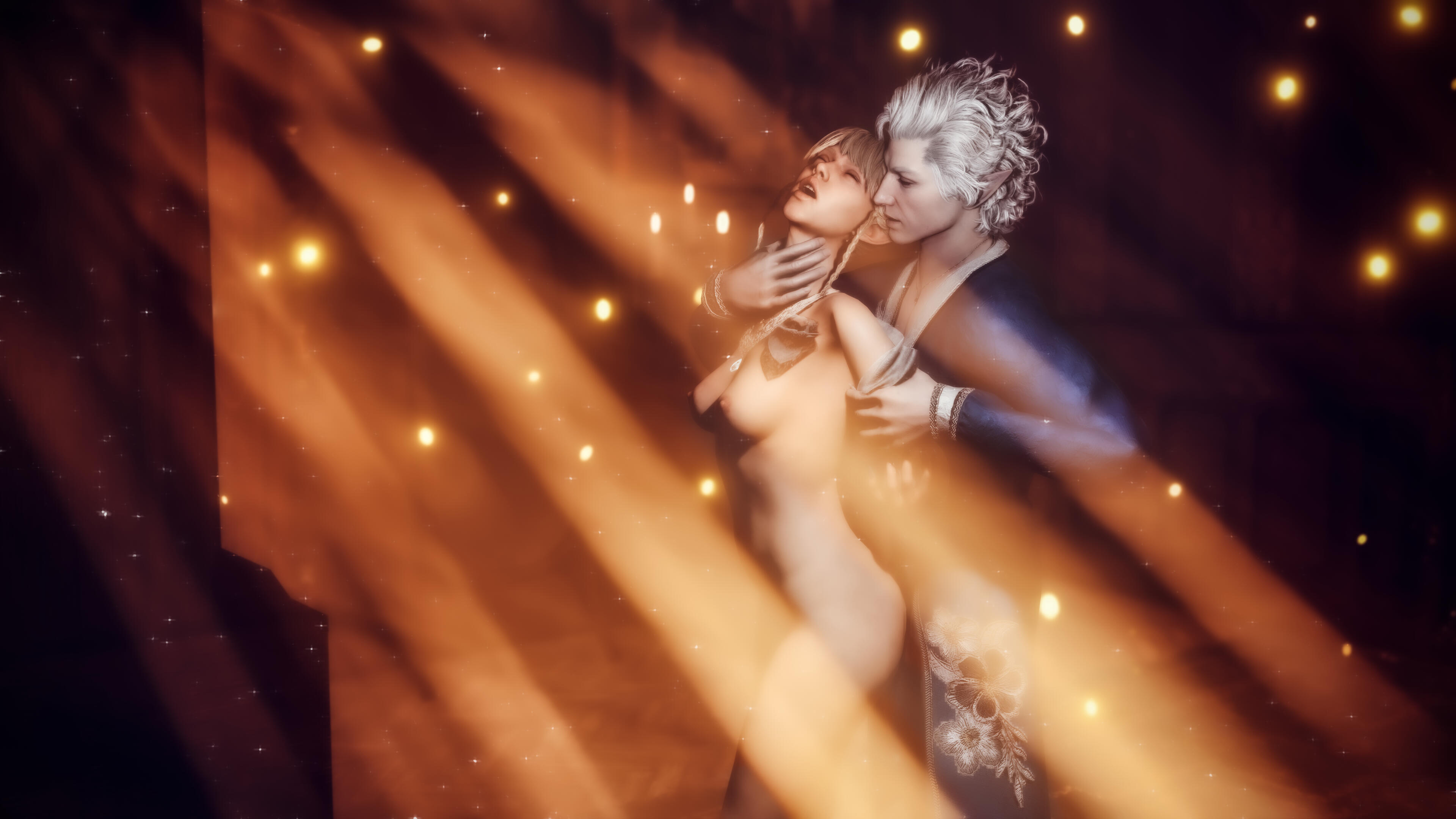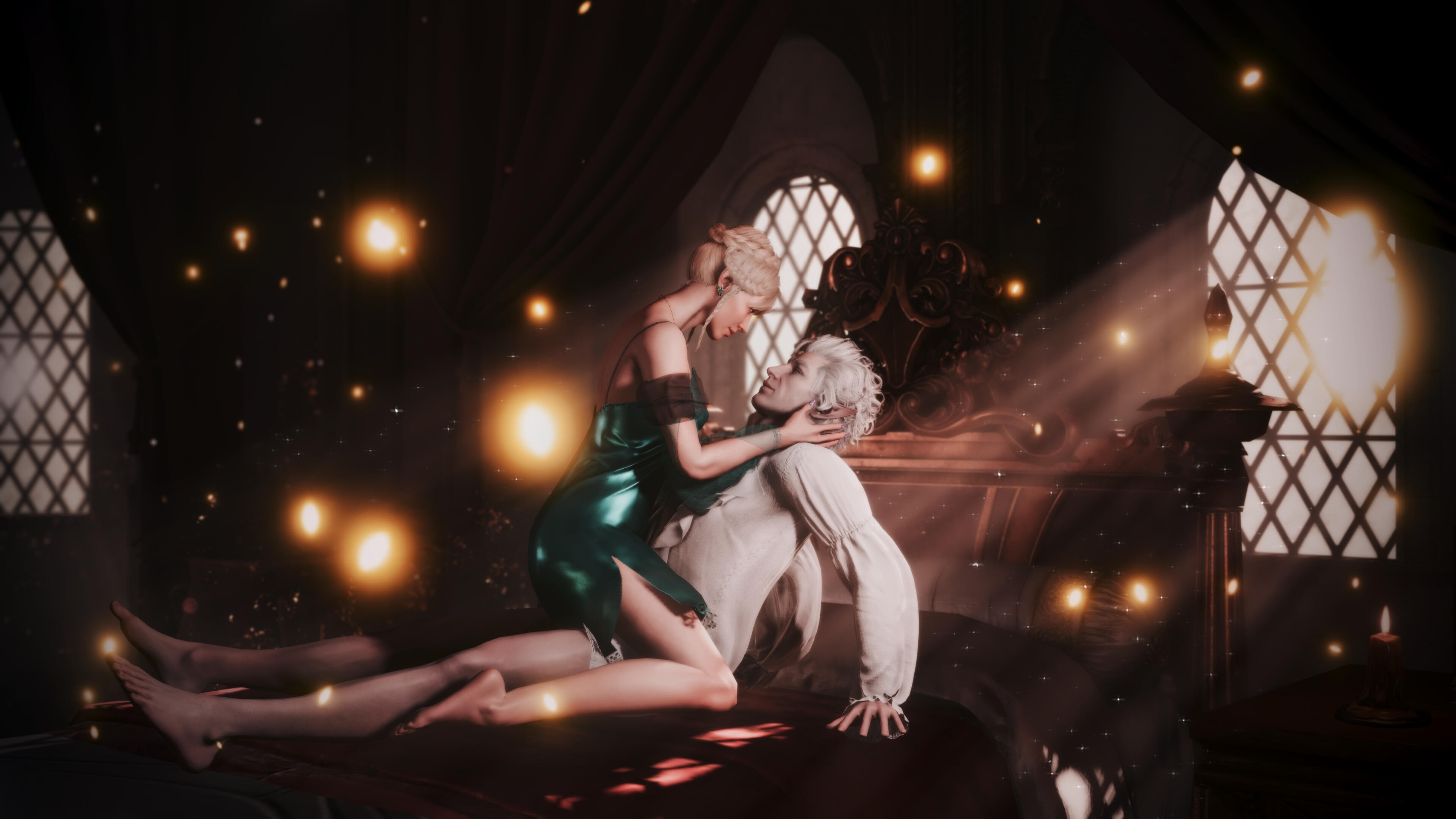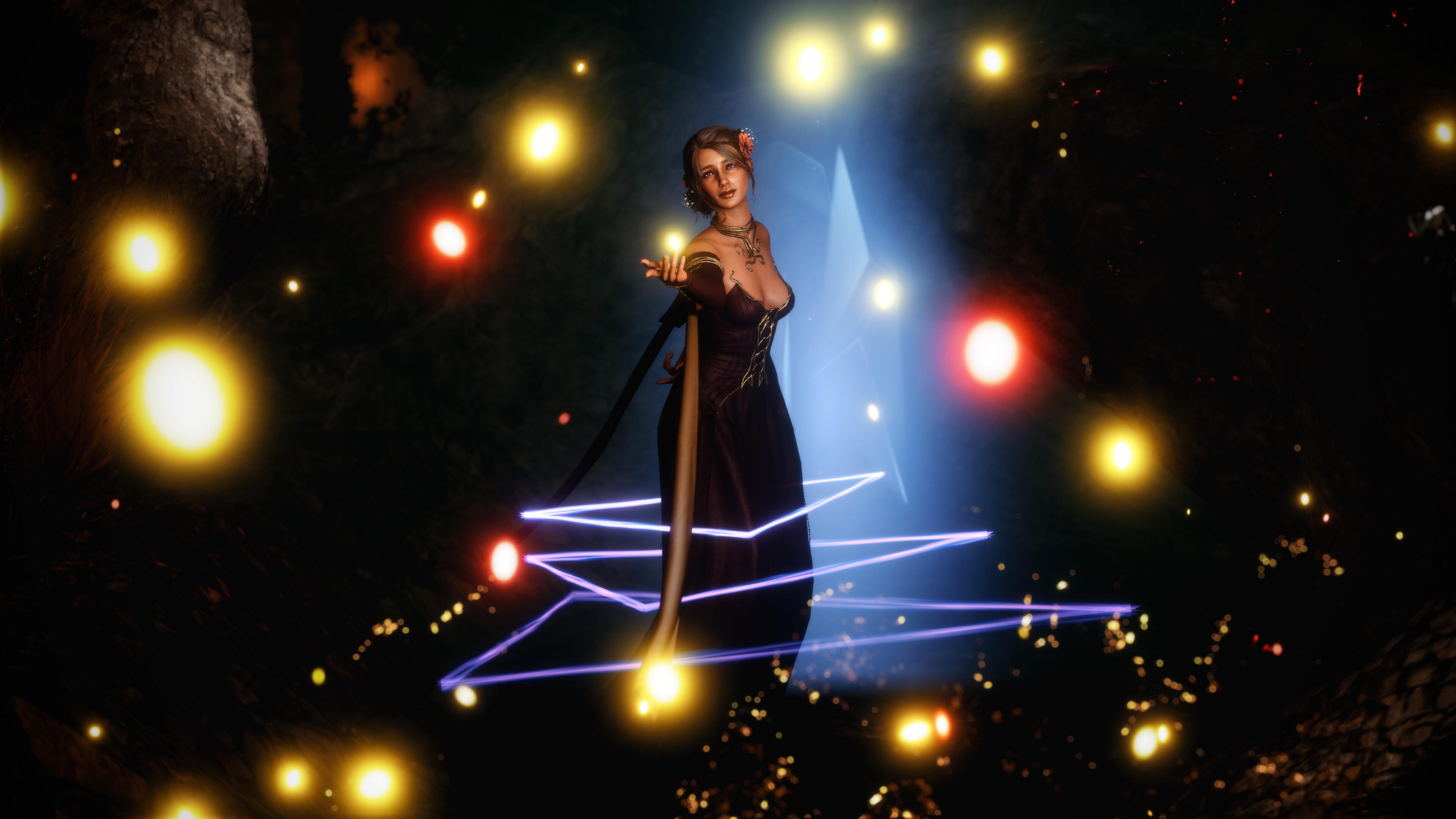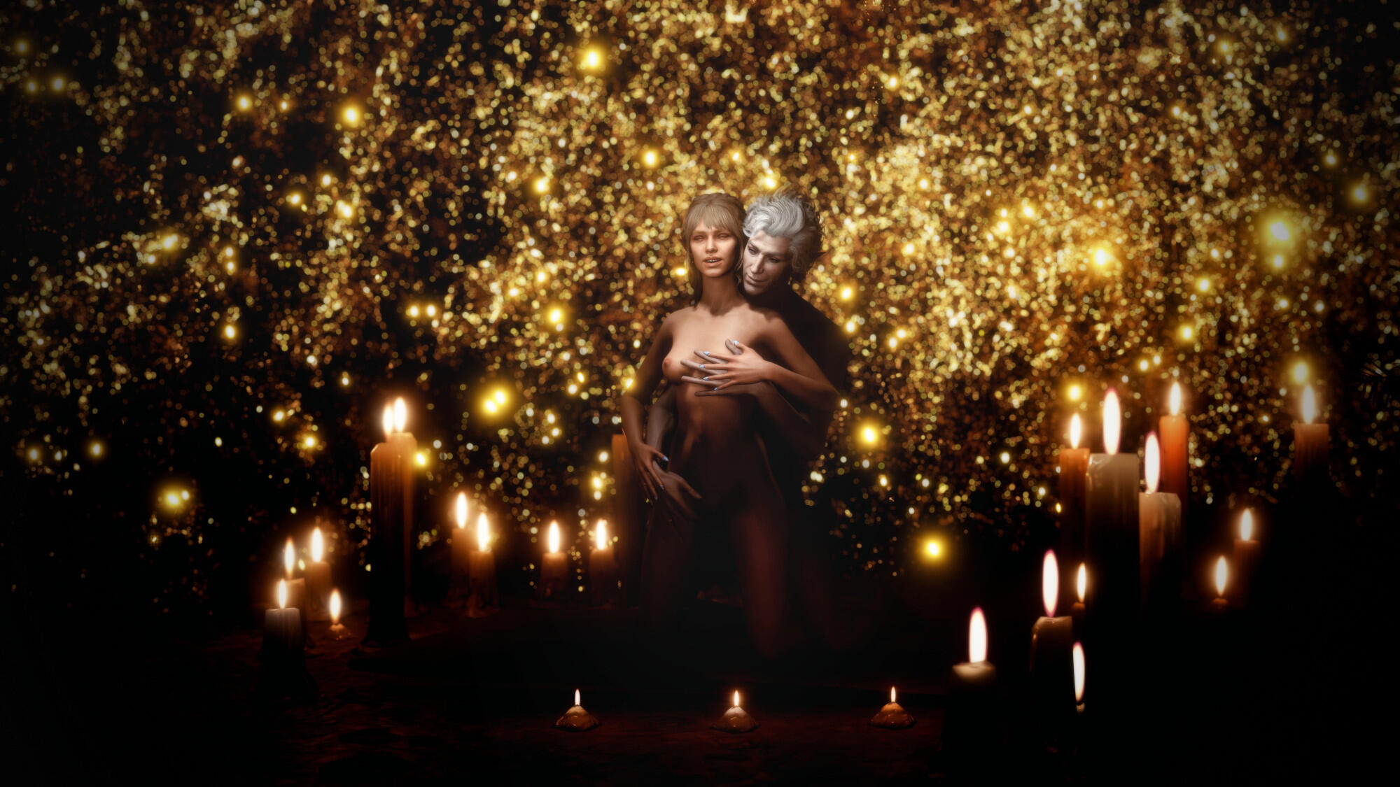 She also remembered the man who contributed to all her tragedy - Elwyn. She remembered how he feigned love for her and he did it all of his own free will for financial gain. She hated this man in few seconds.Aristen and Astarion stayed in the village for a while and moved on to find a way to protect Astarion from the sun. They also had a new companion, Fiona (Aristen's younger sister) who wanted to see some of the world. To have money for the trip, the three of them took various jobs. Sometimes they were mercenaries, sometimes they were doing small jobs or hunting bandits. Fiona also performed in inns, as she was a bard.After a long time and reading dozens of old books and scrolls, Aristen, in an old, forgotten temple in the middle of nowhere, found an enchanted pendant that allowed Astarion to enjoy the sun again after many years. However, all three of them continued their traveling lifestyle.One night Aristen and Astarion were lying on the grass and watching the stars. Then Ari suggested to her beloved one that they maybe return permanently to Baldur's Gate and start a simple, city life. He agreed and asked if she would become his wife. Aristen was surprised, despite spending so many years by Astarion's side, she was afraid that one day he would leave her. She still considered herself a monster, even though she had cut herself off from her father many years ago. Aristen was always afraid that she would somehow become a bloodthirsty murderer again. And Astarion could have almost any woman - she had seen more than once how lustfully ladies looked at him. But he chose her and wants to be with her forever.The wedding took place in her native village. Her entire family and friends celebrated one of the most beautiful days of her life.