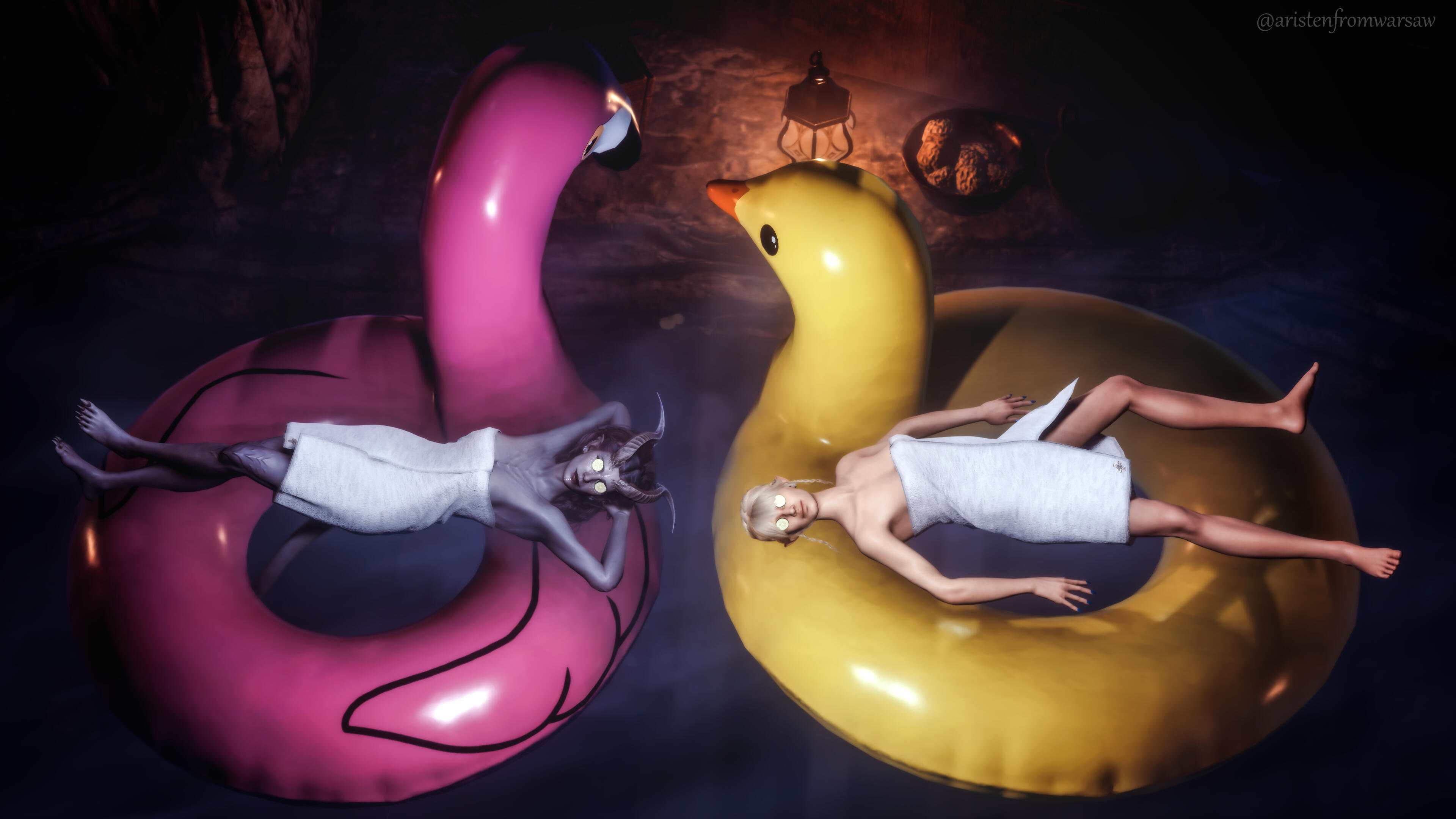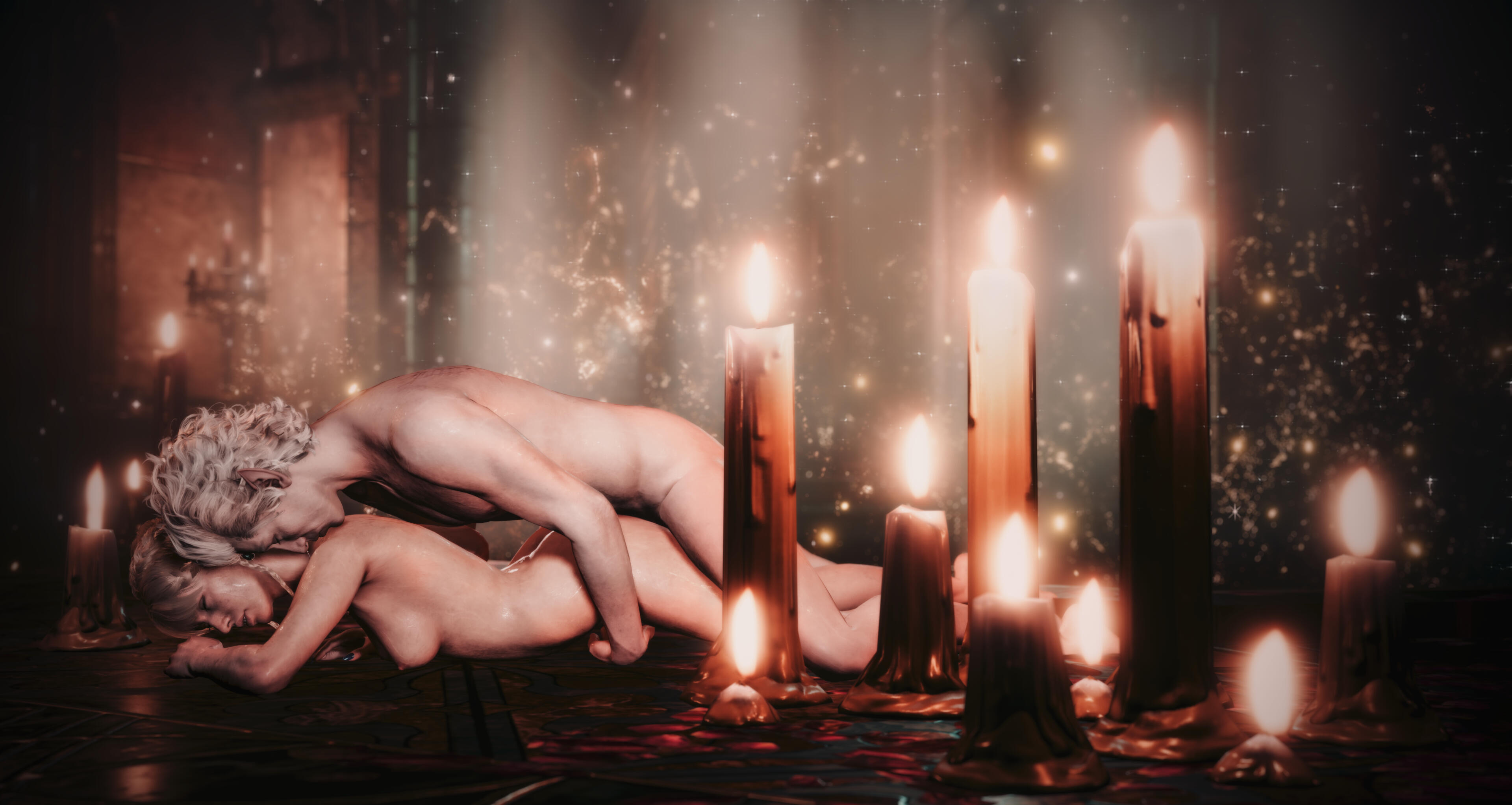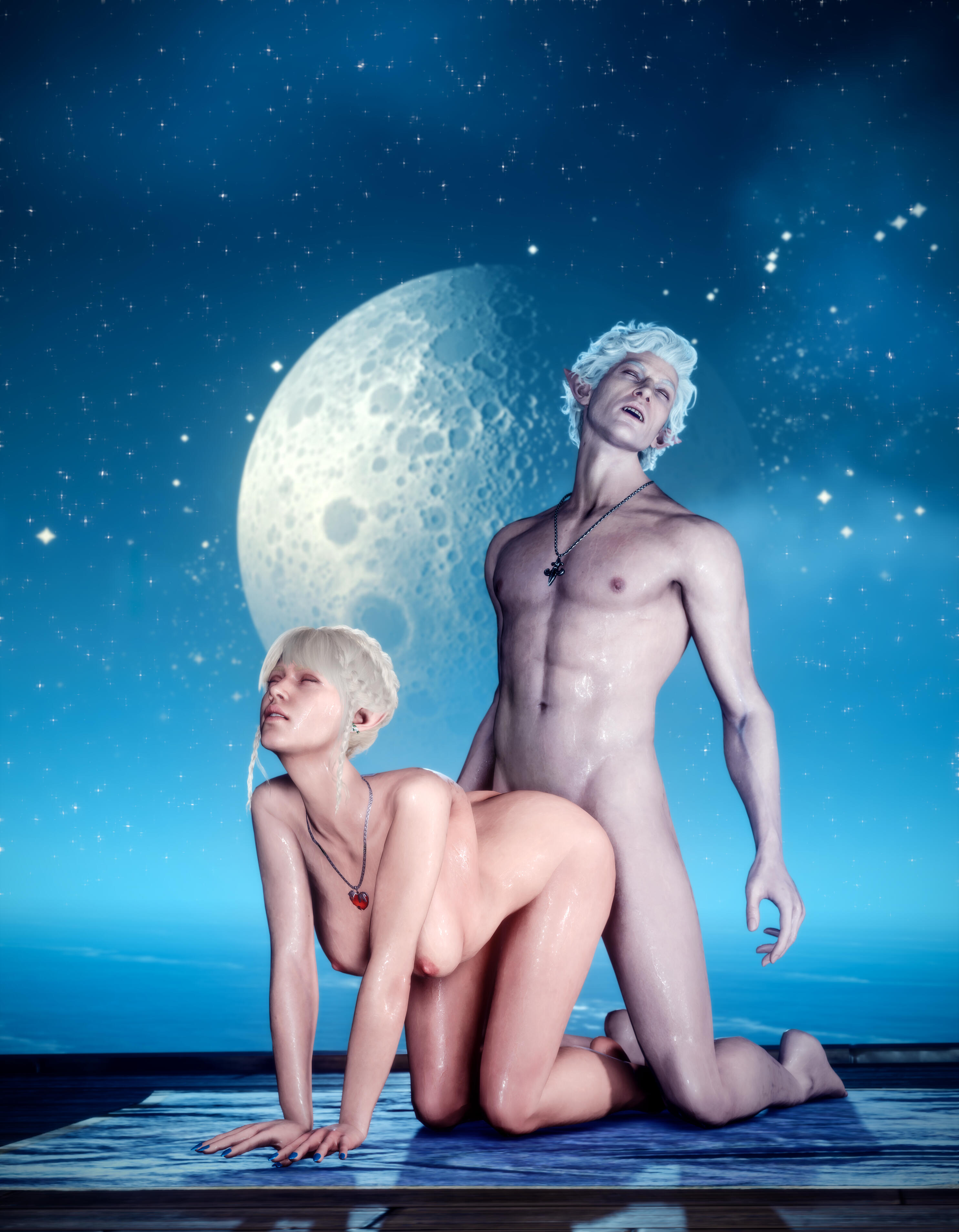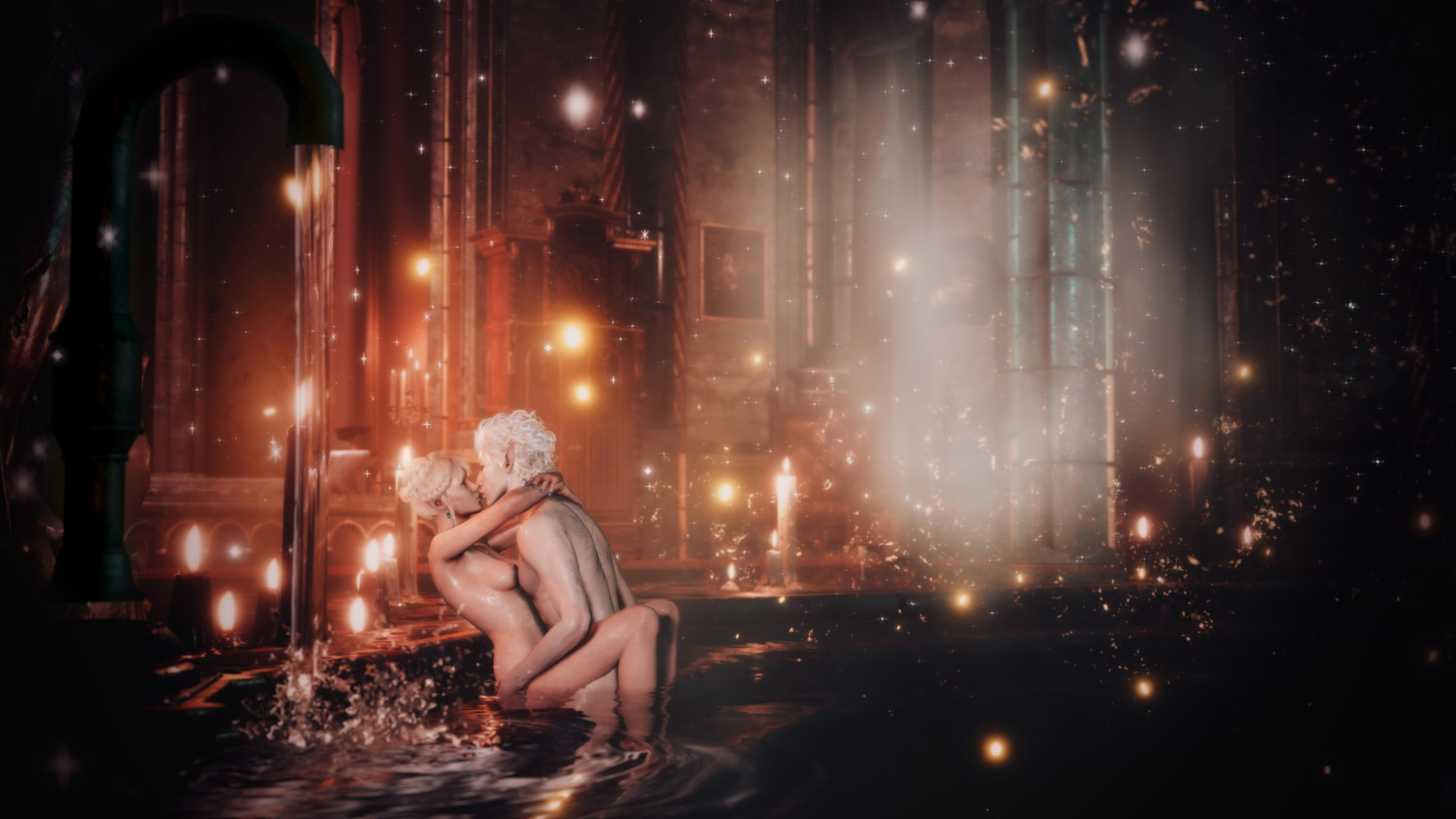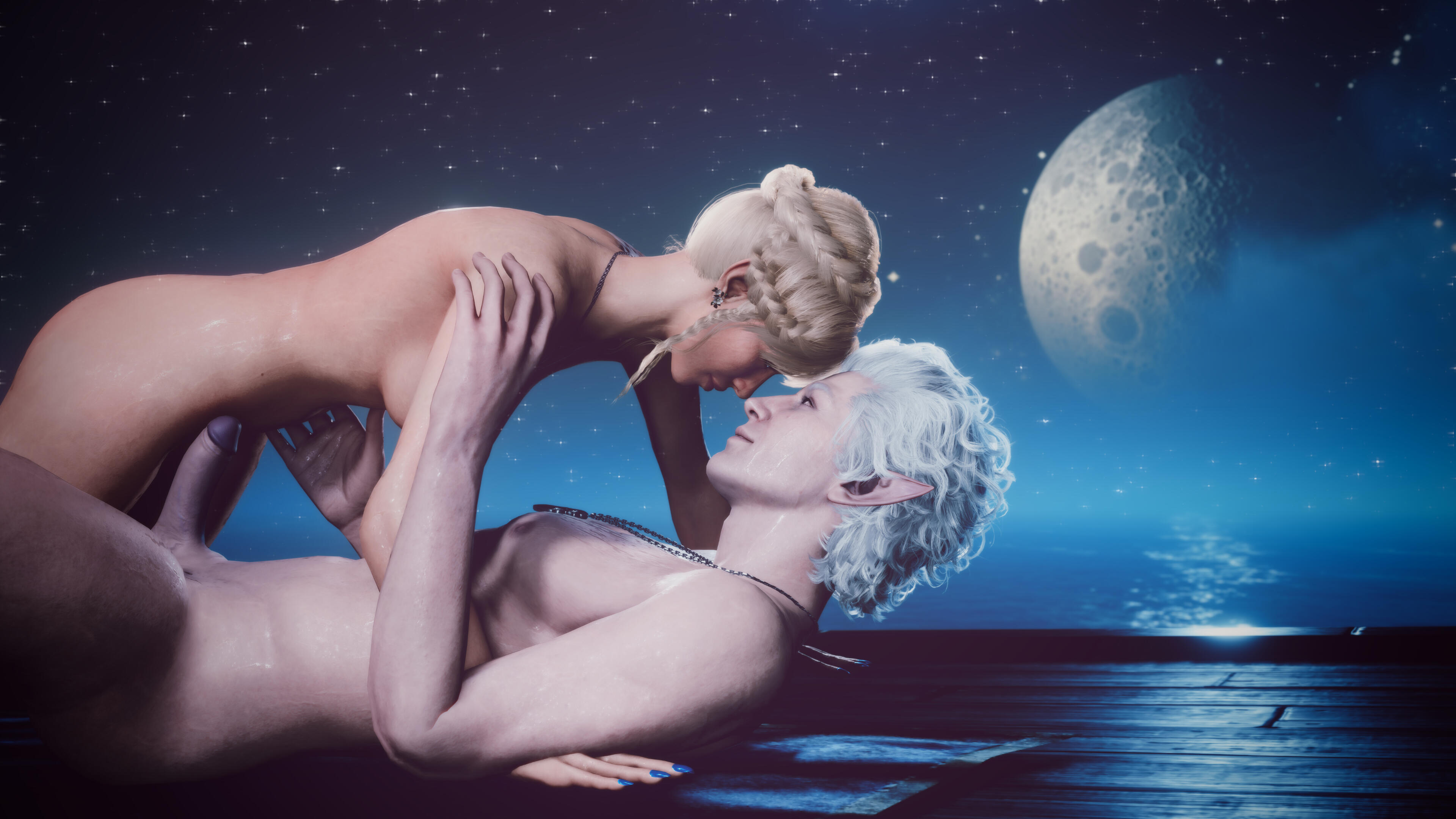 She also remembered the man who contributed to all her tragedy - Elwyn. She remembered how he feigned love for her and he did it all of his own free will for financial gain. She hated this man in few seconds.Aristen and Astarion stayed in the village for a while and moved on to find a way to protect Astarion from the sun. They also had a new companion, Fiona (Aristen's younger sister) who wanted to see some of the world. To have money for the trip, the three of them took various jobs. Sometimes they were mercenaries, sometimes they were doing small jobs or hunting bandits. Fiona also performed in inns, as she was a bard.After a long time and reading dozens of old books and scrolls, Aristen, in an old, forgotten temple in the middle of nowhere, found an enchanted pendant that allowed Astarion to enjoy the sun again after many years. However, all three of them continued their traveling lifestyle.One night Aristen and Astarion were lying on the grass and watching the stars. Then Ari suggested to her beloved one that they maybe return permanently to Baldur's Gate and start a simple, city life. He agreed and asked if she would become his wife. Aristen was surprised, despite spending so many years by Astarion's side, she was afraid that one day he would leave her. She still considered herself a monster, even though she had cut herself off from her father many years ago. Aristen was always afraid that she would somehow become a bloodthirsty murderer again. And Astarion could have almost any woman - she had seen more than once how lustfully ladies looked at him. But he chose her and wants to be with her forever.The wedding took place in her native village. Her entire family and friends celebrated one of the most beautiful days of her life.