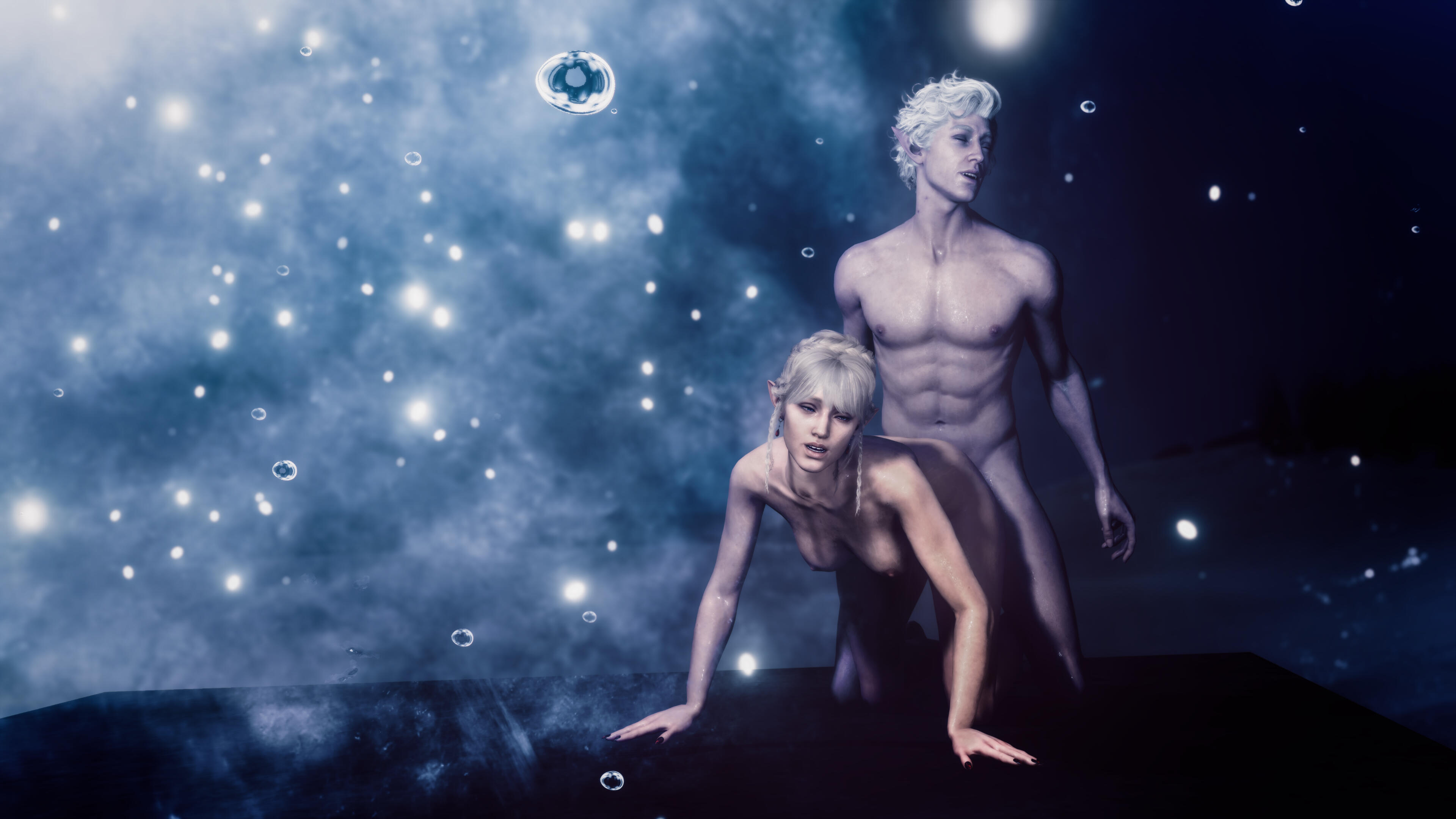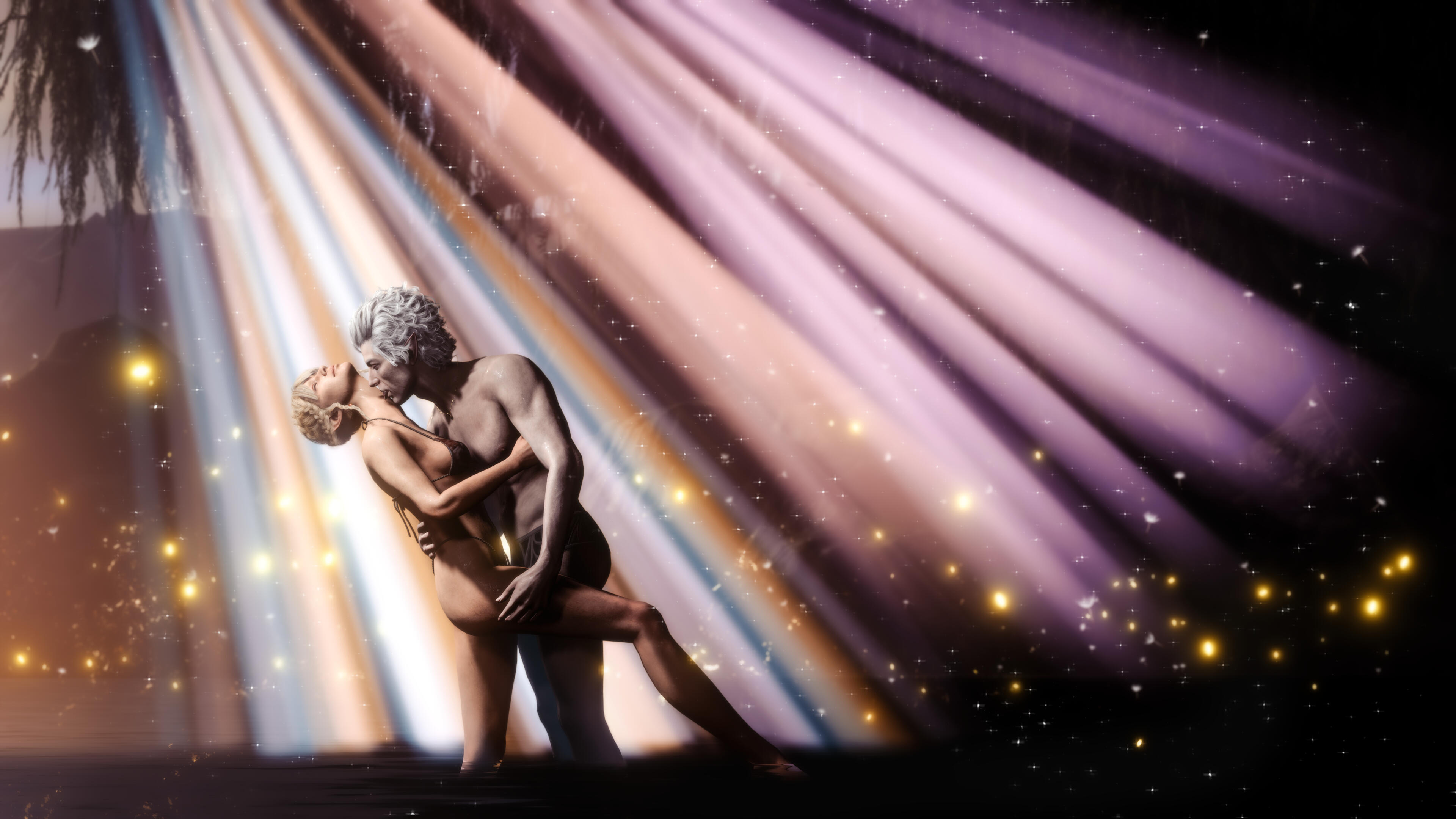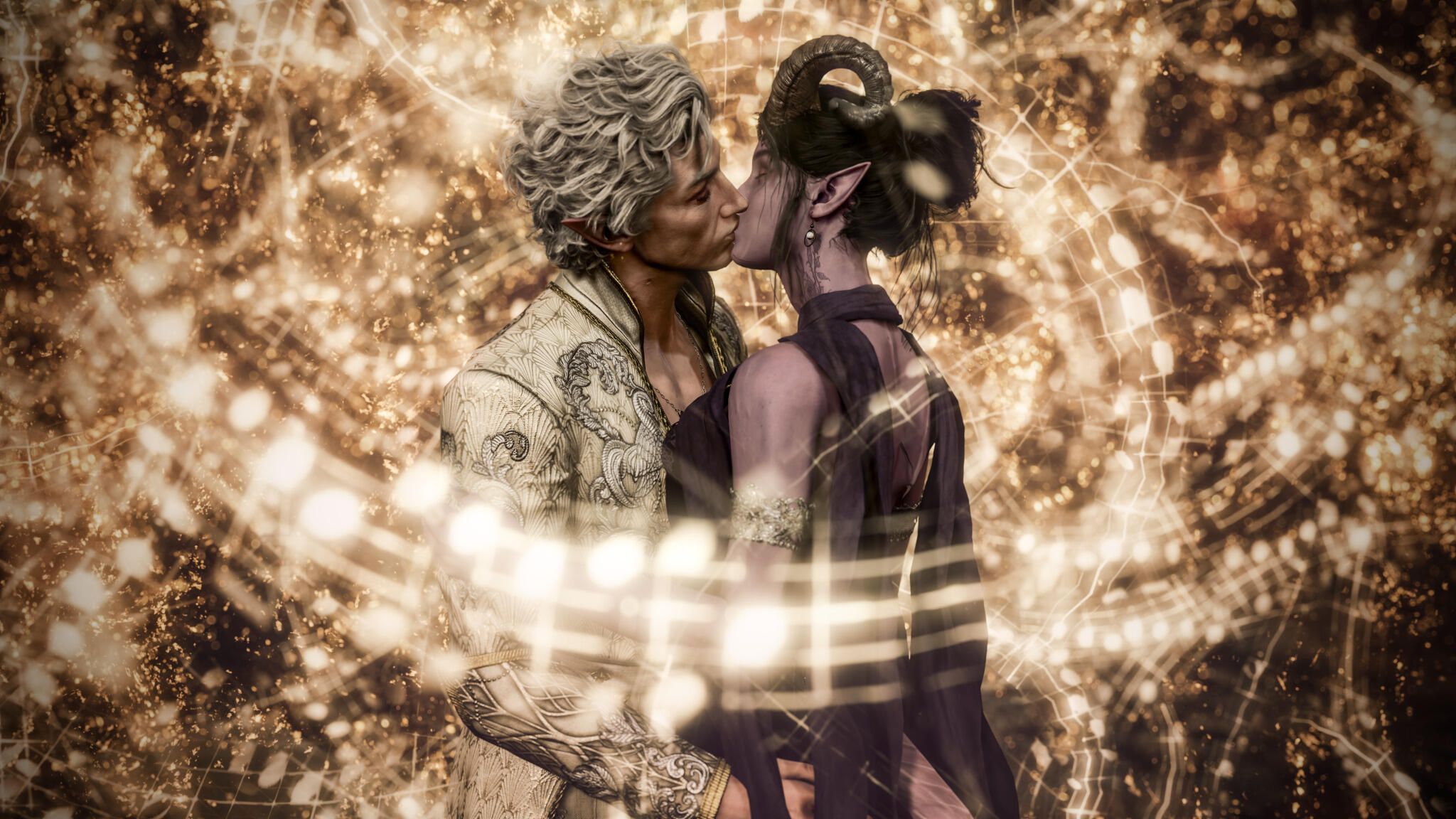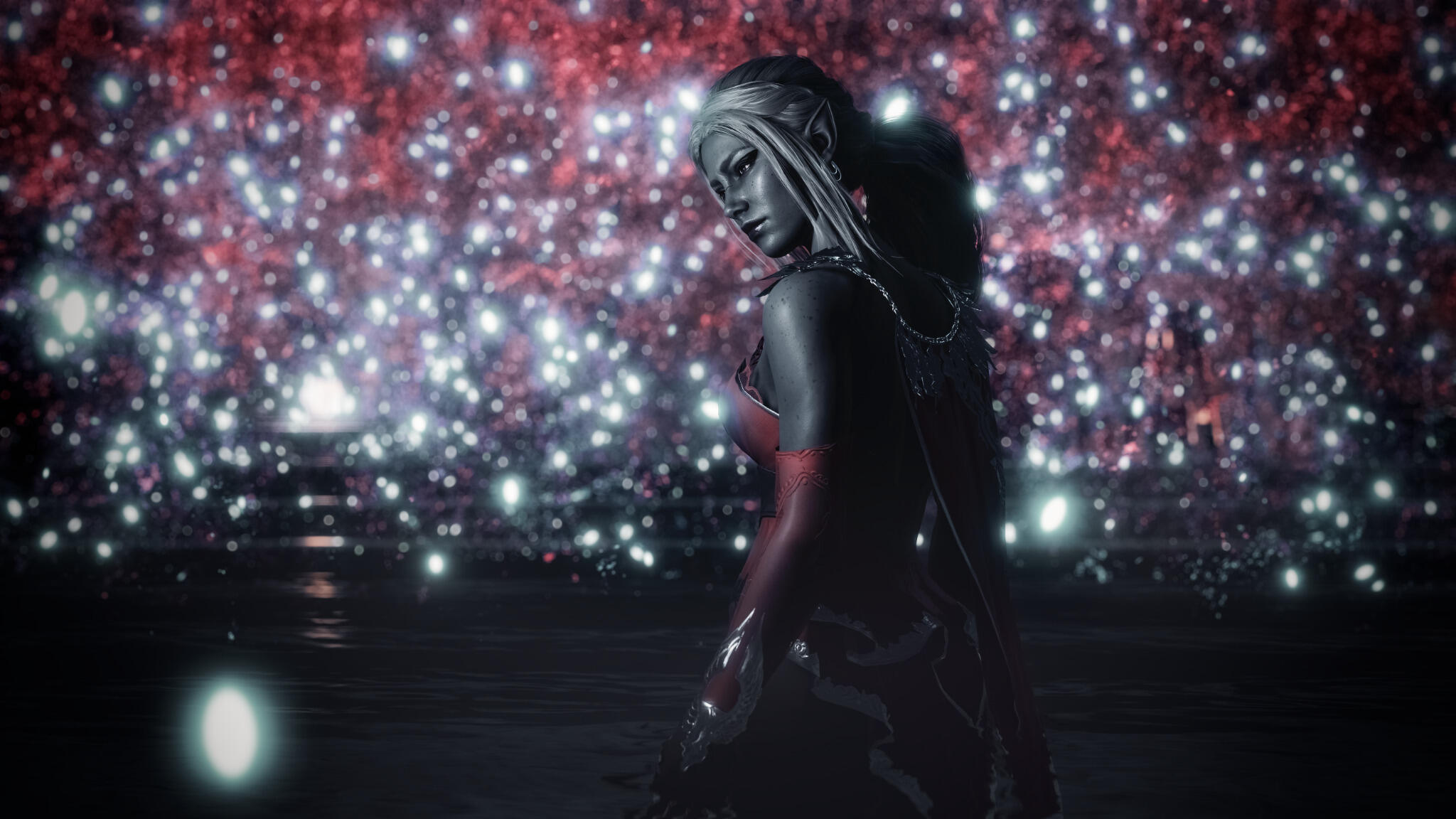 A new beginning (in-game events):Being a Bhaal's doll could have lasted for ages if not a certain incident. One day Aristen was kidnapped by a Mind Flayer's ship. She was infected with their tadpole and lost her memory. Luckily for her, there was a plane crash, which she miraculously survived and managed to escape. Now she had a new goal - to get rid of the tadpole and find out who she is. During her journey she learned the truth about her murderous origins. But she wasn't alone in this. Aristen met some loyal friends: Gale (a human wizard who was harmed by the goddess of magic, Mystra), Karlach (tiefling who, like Ari, was betrayed by the person she trusted), Lae'zel (githyanki who was deceived by her queen), Shadowheart (a priestess of Shar who rejected her goddess), Wyll (human Warlock who sacrificed a lot to save others), Halsin (an elf druid who likes to carve ducks from wood), Jaheira (half elf and High Harper) and Minsc (Jaheira's friend who considers his hamster to be his mentor). And even though everyone supported her, Aristen felt that they didn't fully understand her, they don't know what it means to be someone's puppet. Except for one person who had similar sins as her. A men who has been a plaything for the powerful vampire for over 200 years. That toy was Astarion, high elf, vampire spawn. At first, Aristen had mixed feelings towards him, but later she realized that they were two of a kind. He was the only one who truly understood her dark urge and he truly was not afraid of her. They fell in love with each other.One night the urge to kill become strong and Aristen had mighty desire to kill Astarion. Resisting her whisperings, she decided to do everything to save him. Aristen woke him up and asked him to tie her up. She felt that after such an incident the vampire would break up with her. Who would want a partner who could kill you in the middle of the night ? But no, Astarion didn't break up with her, he was with her all night, watching over her. He wasn't even mad at her. He didn't see her as a monster, but only as a normal person who had been wronged by fate - she saw him the same way. Thanks to Astarion, everything became easier and impossible things became possible.
